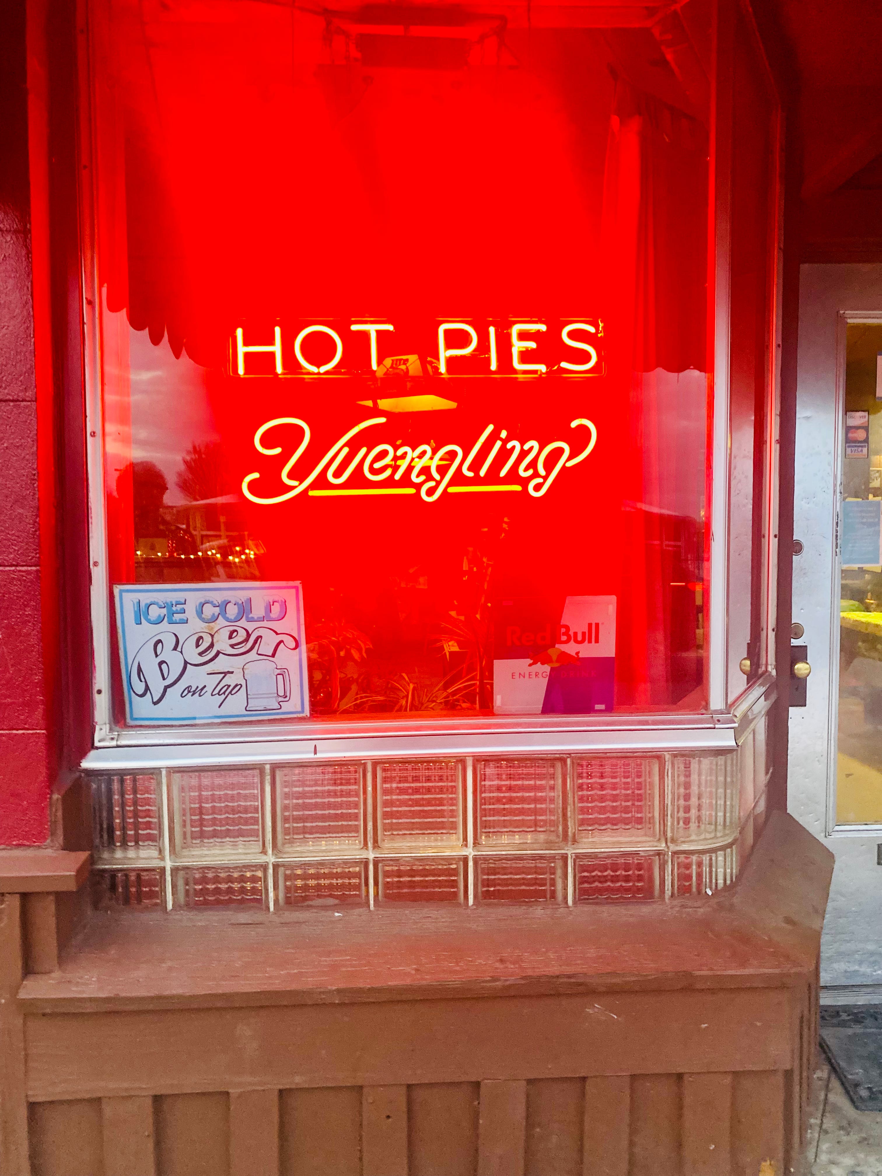 The old sign in the window of Red’s Kettle Inn in Johnson City, New York, listed the daily specials. Tuesday: burgers; Wednesday; wings; Thursday: Hot Pies.